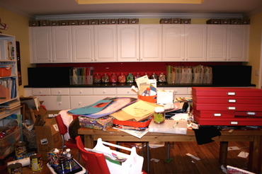 Nevím, jak Vy, ale já při tvoření rozhodně nehledím na to, kam co padne či spadne, nekoukám napravo ani nalevo a jen tvořím. No a tak se mi skoro vždy stane, že po návalu mé inspirace mi všude kolem zůstane neskutečný chaos. Samozřejmě nejenom na místě činu. Děti to ochotně roznesou na svých neposedných nožkách po celém domě :)