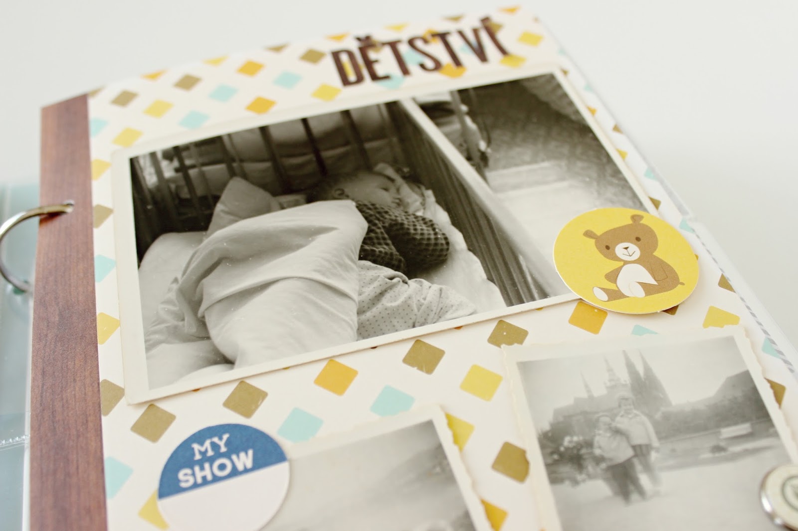 A zde musím navýsost vychválit báječné PA produkty. Přiznávám, že mi je angličtina a anglické nápisy při tvorbě našeho PL prostě bližší, ale tentokrát bych se bez českých kartiček, výseků či razítek nikam nedostala. Tatík je starší generace a angličtinou tolik nevládne. Nechtěla jsem se omezit pouze všeobecně známým hello či love, a tak se mi všechny české propriety náramně hodily. A teď vás zvu na prohlídku..