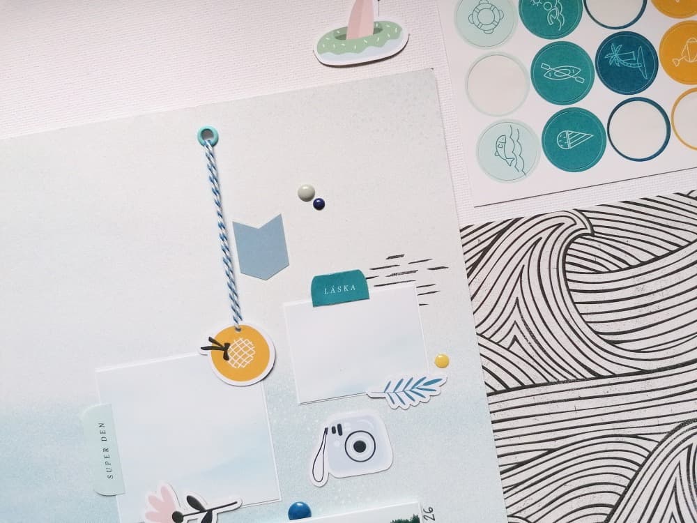 Krásný pátek ;) Ze srpnového kitu U vody jste už mohli vidět od ostatních děvčat z DT spoustu krásných stránek a dokonce i přáníček, no a dnes přišla řada i na mou inspiraci z tohoto super osvěžujícího kitu.